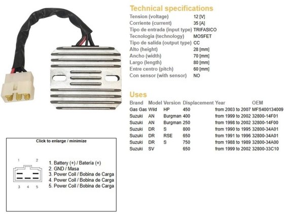 Przeznaczenie: stabilizacja i kontrola napięcia w instalacji elektrycznej pojazdów mechanicznych (motocykle, skutery, quady, samochody)