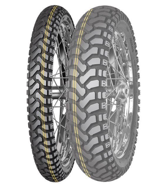 ODKRYJ PEŁNIĘ PRZYGóD NA DWóCH KóŁKACH Z MITAS ENDURO TRAIL ! MITAS ENDURO TRAIL - opona motocyklowa marki MITAS przeznaczona do 50% jazdy po drogach asfaltowych, została stworzona z myślą o osiągnięciu wszechstronnej wydajności i pewności na nawierzchniach zarówno utwardzonych, jak i szutrowych. ZALETY MITAS ENDURO TRAIL : - Doskonała przyczepność oraz stabilność - charakteryzujący się agresywnym bieżnikiem w formie małych bloków w kształcie chevronów. MITAS ENDURO TRAIL zapewnia doskonałą przyczepność, stabilność oraz pewność prowadzenia, nawet w trudnych warunkach deszczowych. - Wszechstronność- model MITAS ENDURO TRAIL sprawdza się zarówno na suchej nawierzchni, jak i w mokrych warunkach, co czyni go niezastąpionym w różnorodnych sytuacjach. - Wysoka trwałość- MITAS ENDURO TRAIL dostępne są w wersji Heavy-Duty, a także opcjonalnie w wersji Ultra Heavy-Duty (DAKAR), które są zaprojektowane z myślą o wydłużonej trwałości, idealnej dla motocykli używanych w trudnych warunkach terenowych. To oznacza, że opona MITAS ENDURO TRAIL jest gotowa na pokonywanie rozmaitych przeszkód i wyzwań, zawsze utrzymując solidność i niezawodność. Opona MITAS ENDURO TRAIL jest doskonałym wyborem dla pasjonatów przygód, którzy poszukują równowagi między jazdą na dłuższych trasach turystycznych a eksploracją wymagających terenów off-road. To nie tylko opona motocyklowa, to klucz do swobodnej i pewnej jazdy w każdych warunkach!