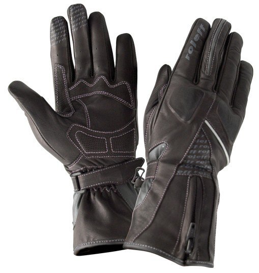 ROLEFF RĘKAWICE DAMSKIE TURYSTYCZNE, SKÓRZANE DŁUGIE RO76 BLACK ROZMIAR M