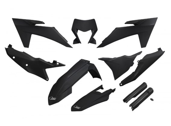 UFO KOMPLET PLASTIKÓW (FULL KIT) Z OSŁONAMI TELESKOPÓW (AMORTYZATORÓW) KTM EXC 150 / 250 / 300 TBI '24-'25, EXC-F 250 / 350 / 45