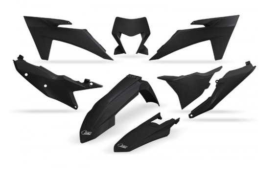 UFO KOMPLET PLASTIKÓW KTM EXC 150 / 250 / 300 TBI '24-'25, EXC-F 250 / 350 / 450 / 500 '24-'25 KOLOR CZARNY